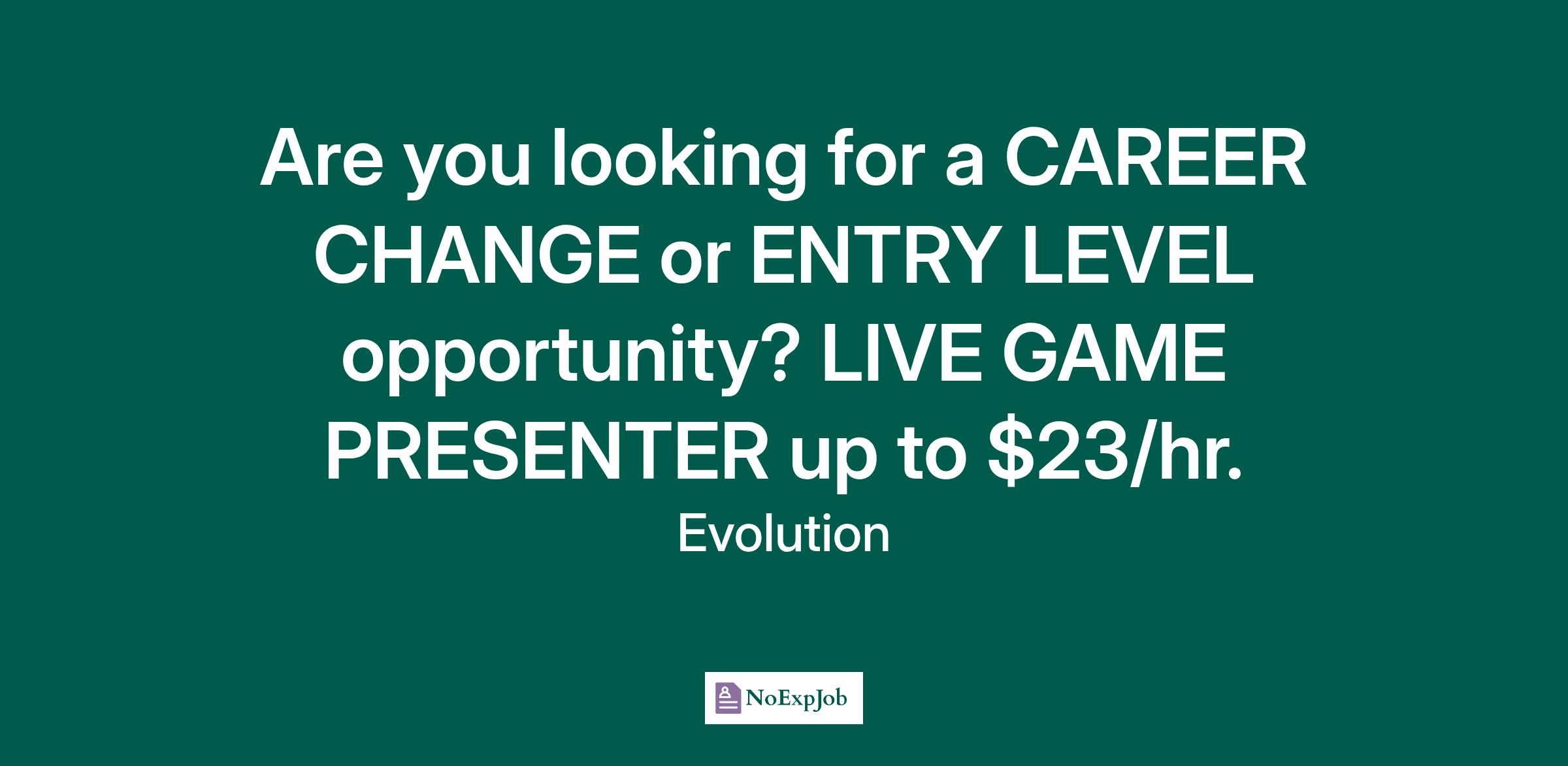 Are you looking for a CAREER CHANGE or ENTRY LEVEL opportunity? LIVE GAME PRESENTER up to $23/hr.