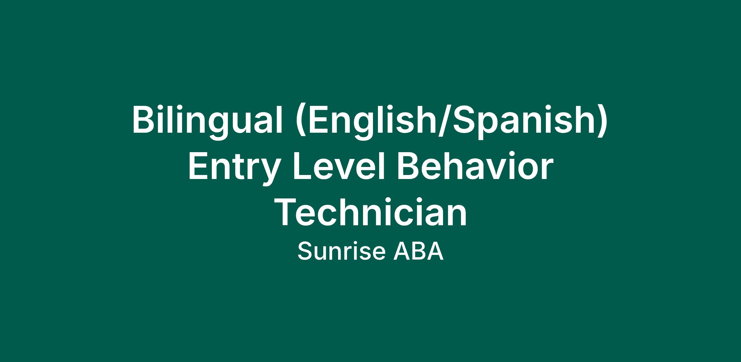 Bilingual (English/Spanish) Entry Level Behavior Technician