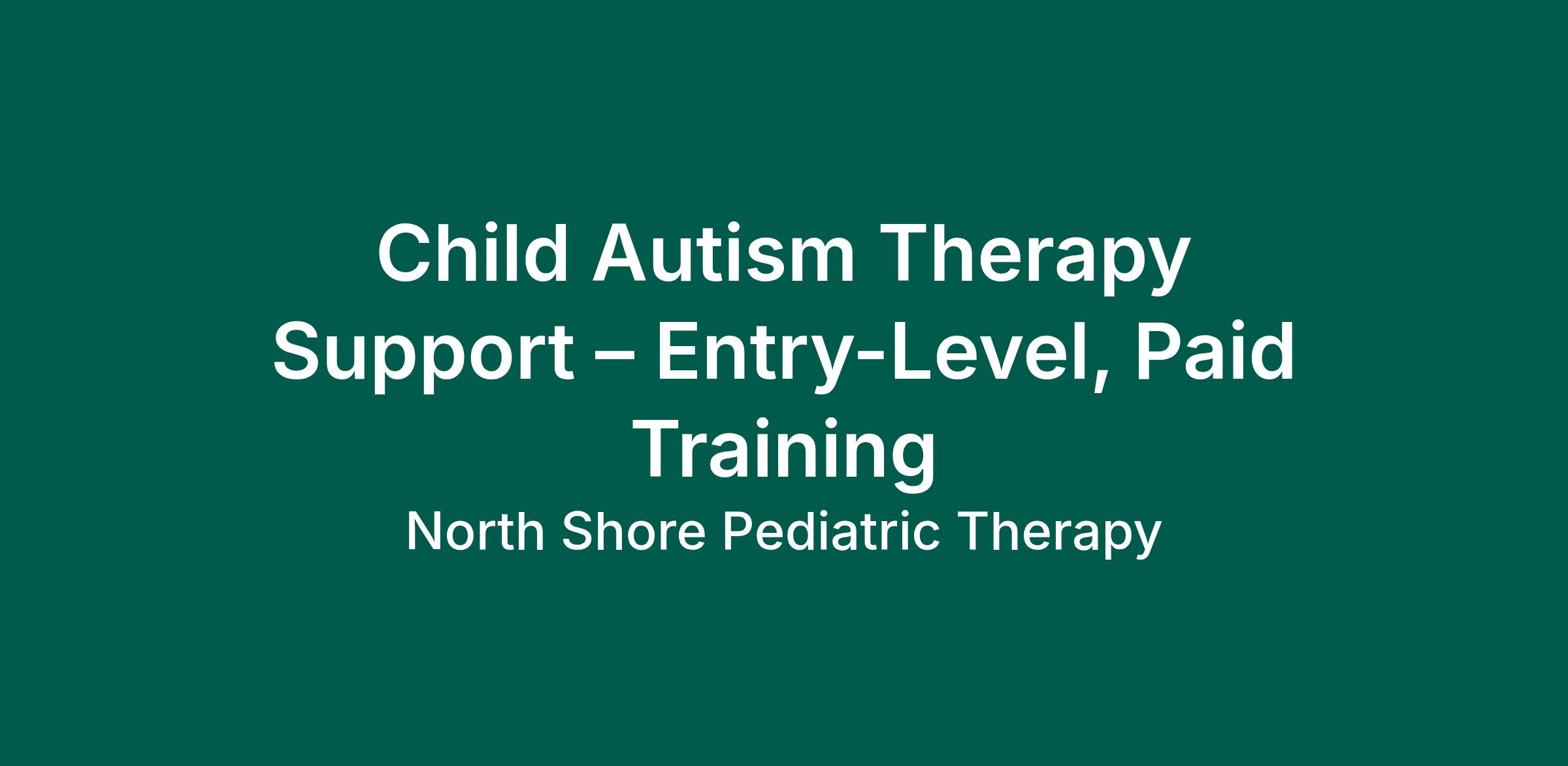 Child Autism Therapy Support – Entry-Level, Paid Training