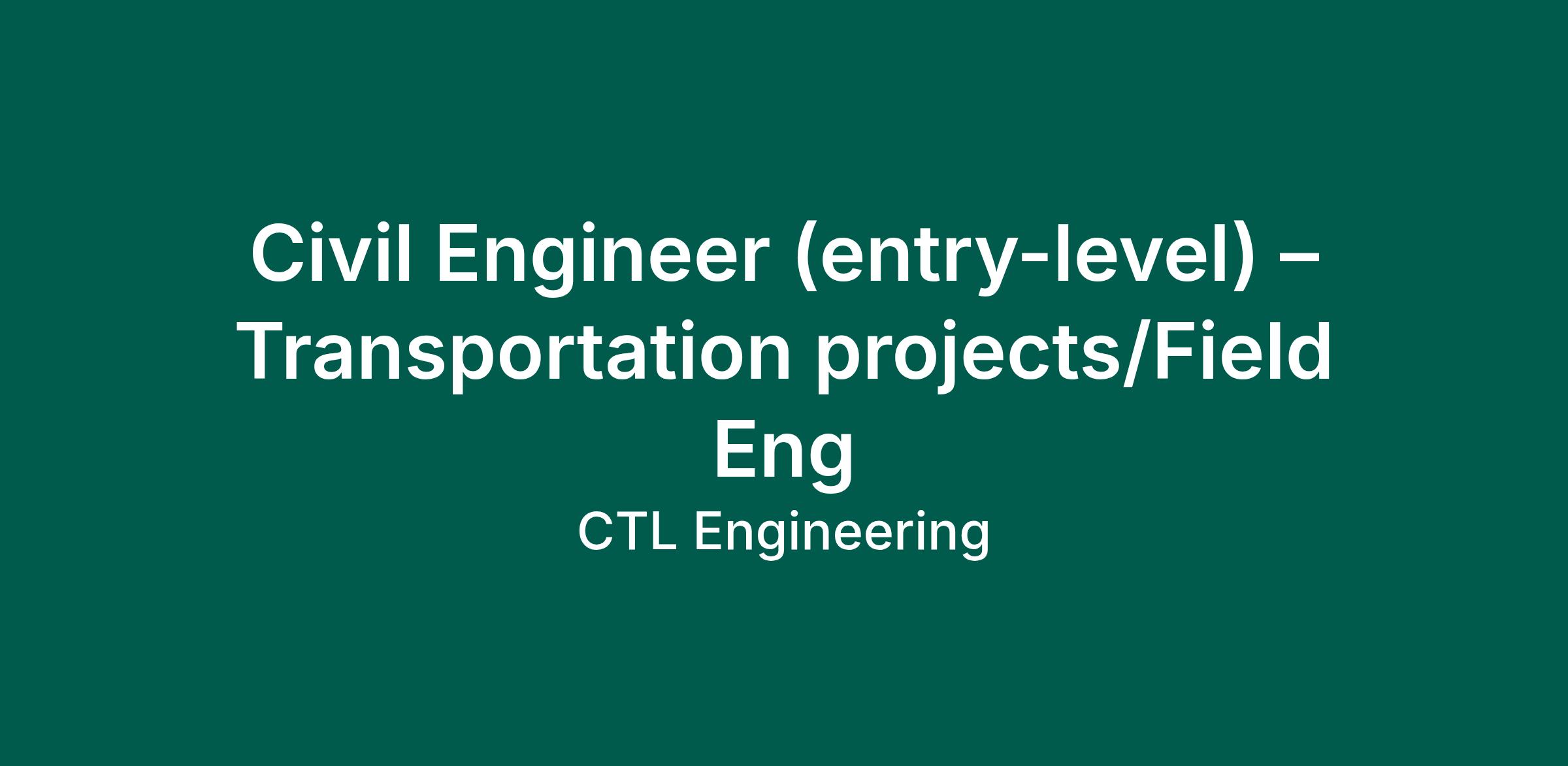 CTL Engineering is hiring Field/Civil Engineers – Transportation projects (entry-level).