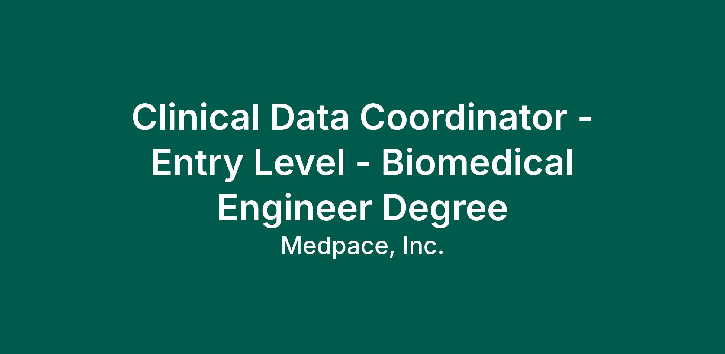 Clinical Data Coordinator - Entry Level - Biomedical Engineer Degree