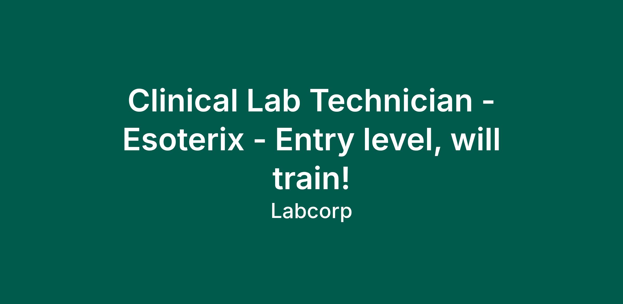 Clinical Lab Technician - Esoterix - Entry level, will train!
