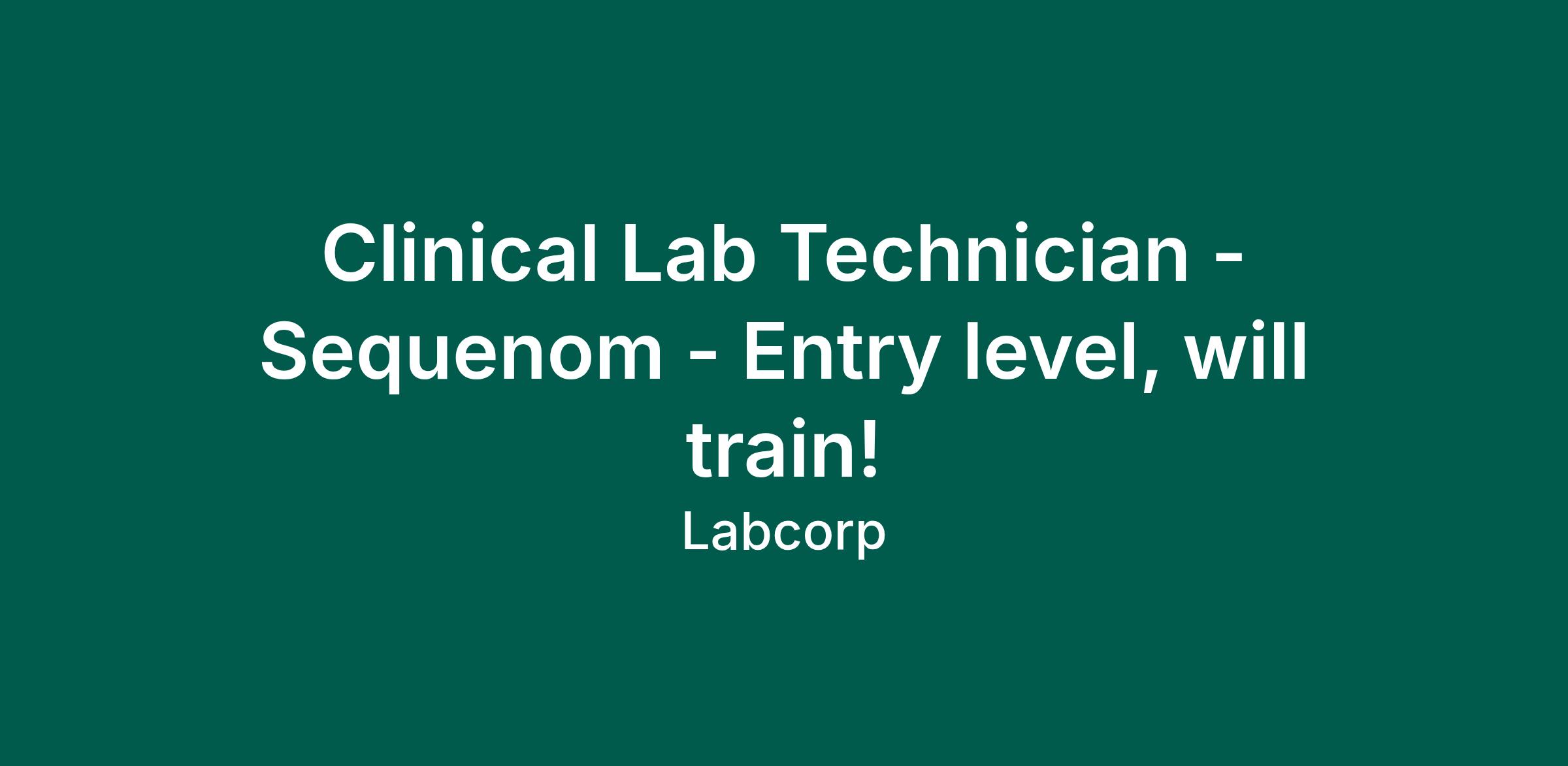 Clinical Lab Technician - Sequenom - Entry level, will train!