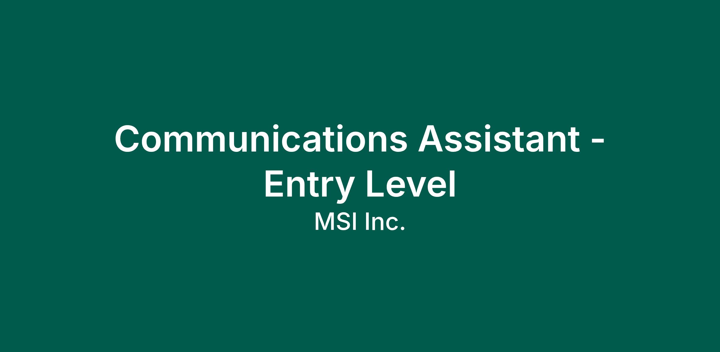 Communications Assistant - Entry Level