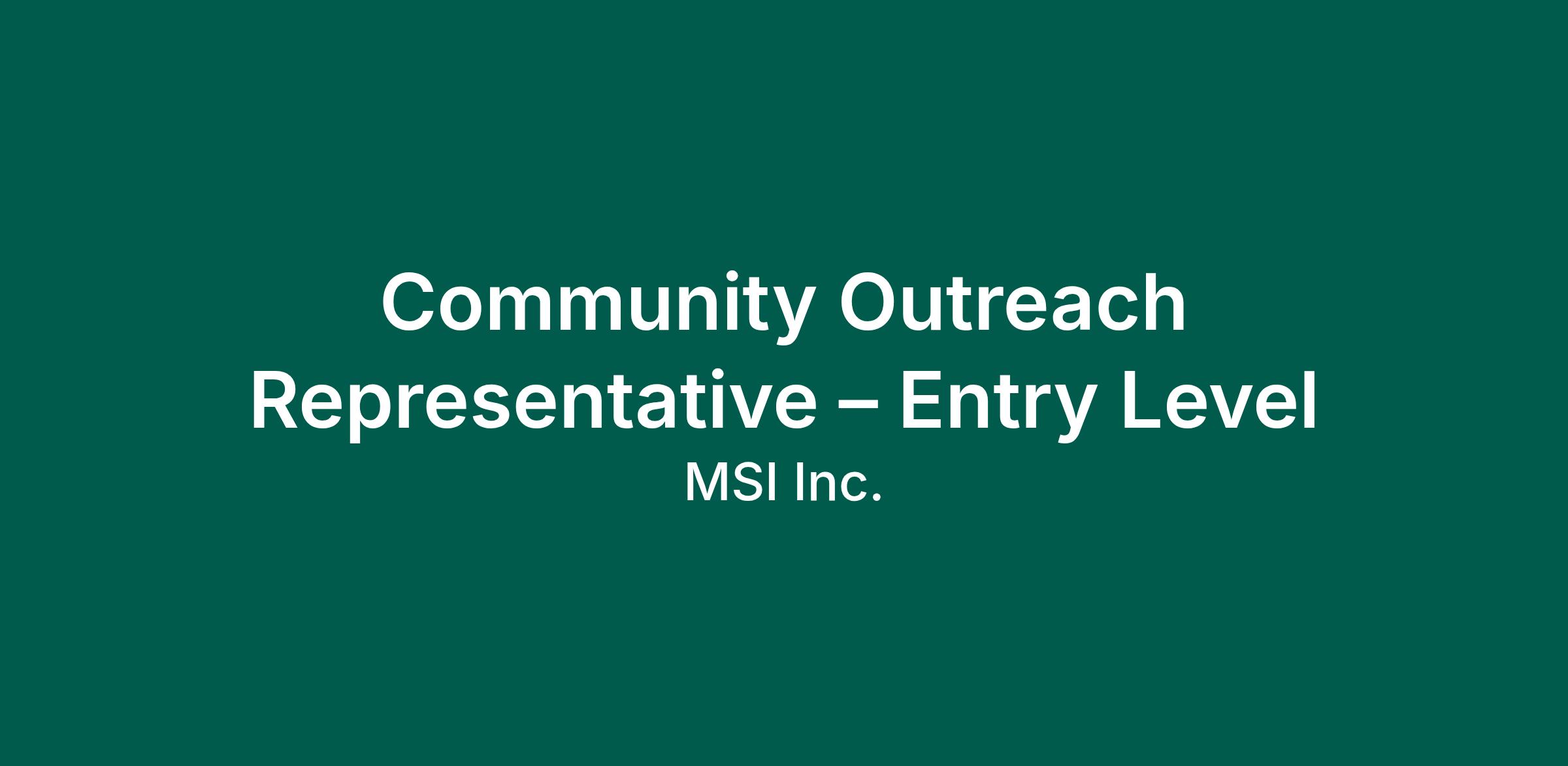 Community Outreach Representative – Entry Level