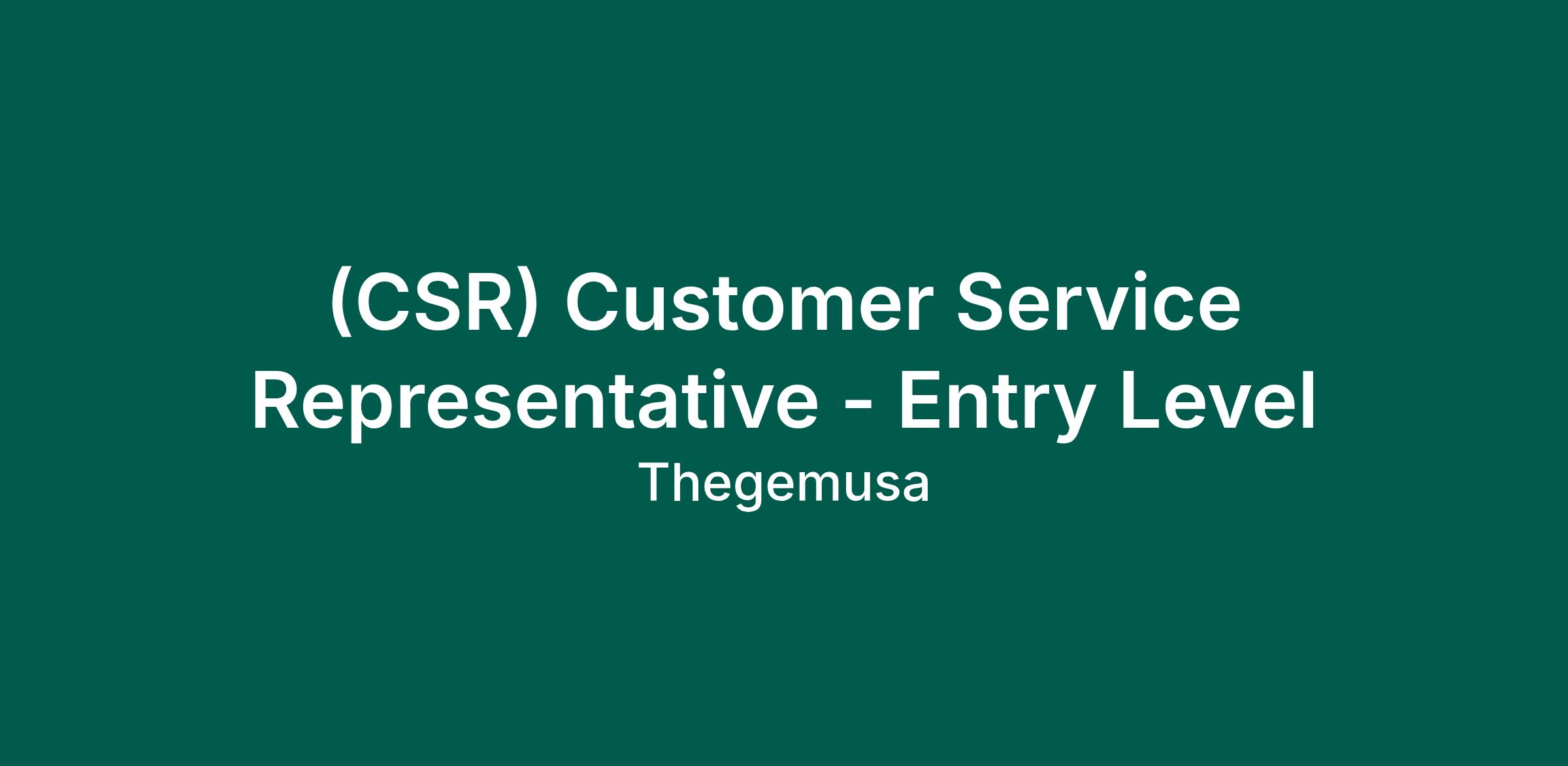 (CSR) Customer Service Representative - Entry Level