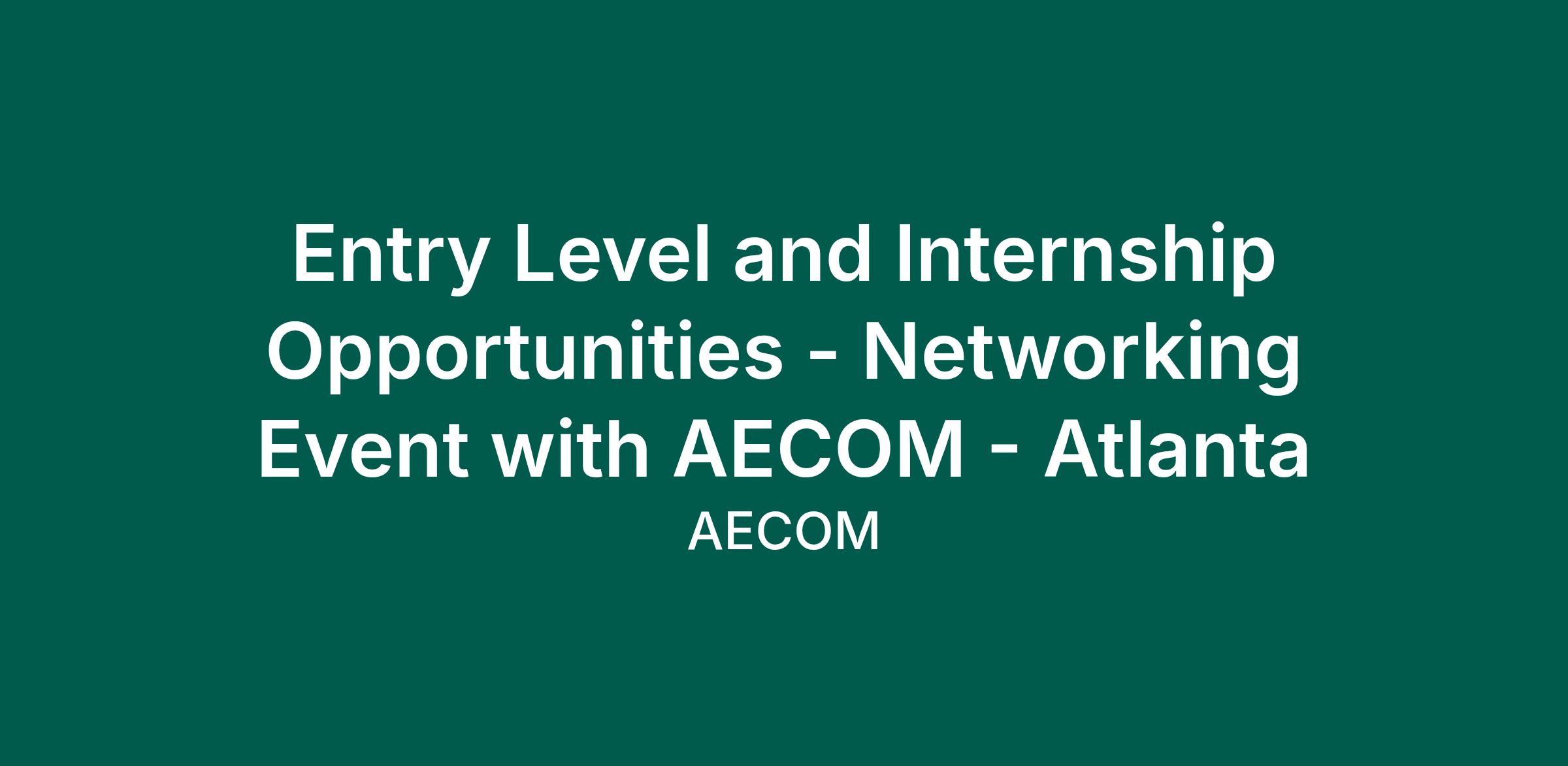 Entry Level and Internship Opportunities - Networking Event with AECOM - Atlanta