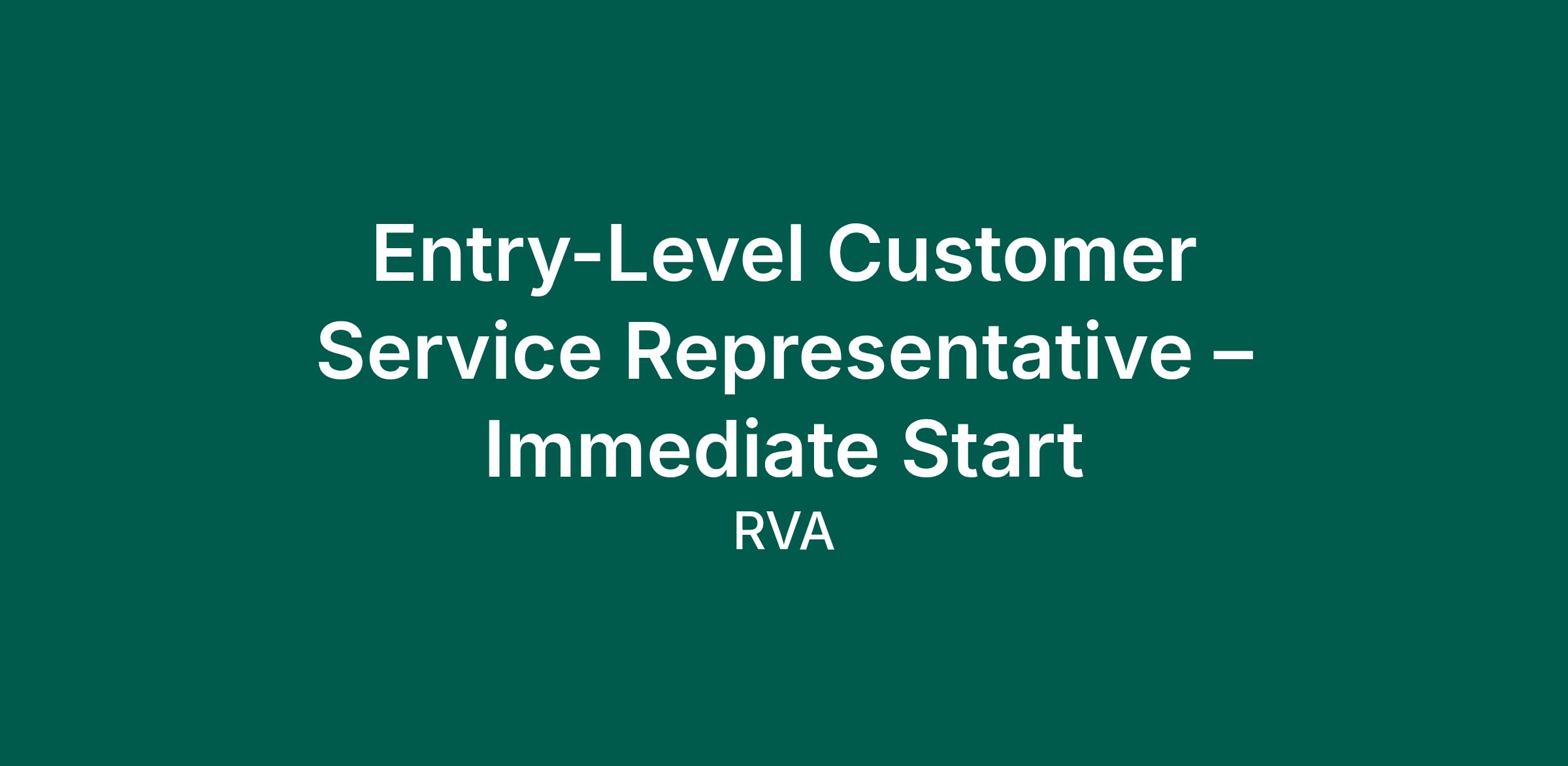 Entry-Level Customer Service Representative – Immediate Start