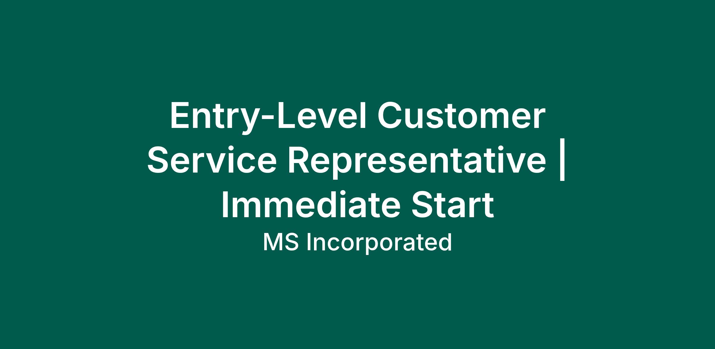 Entry-Level Customer Service Representative | Immediate Start