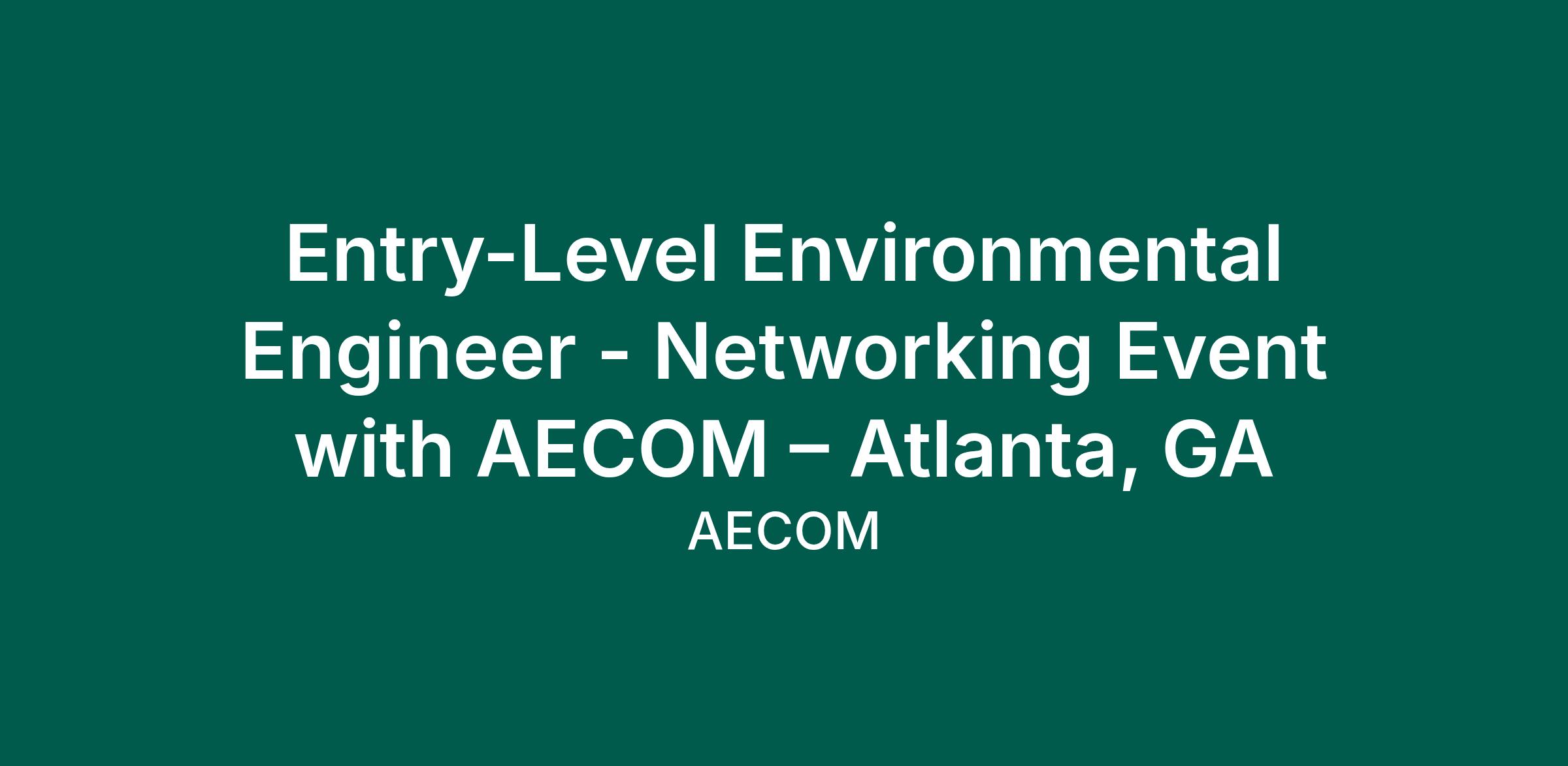 Entry-Level Environmental Engineer - Networking Event with AECOM – Atlanta, GA