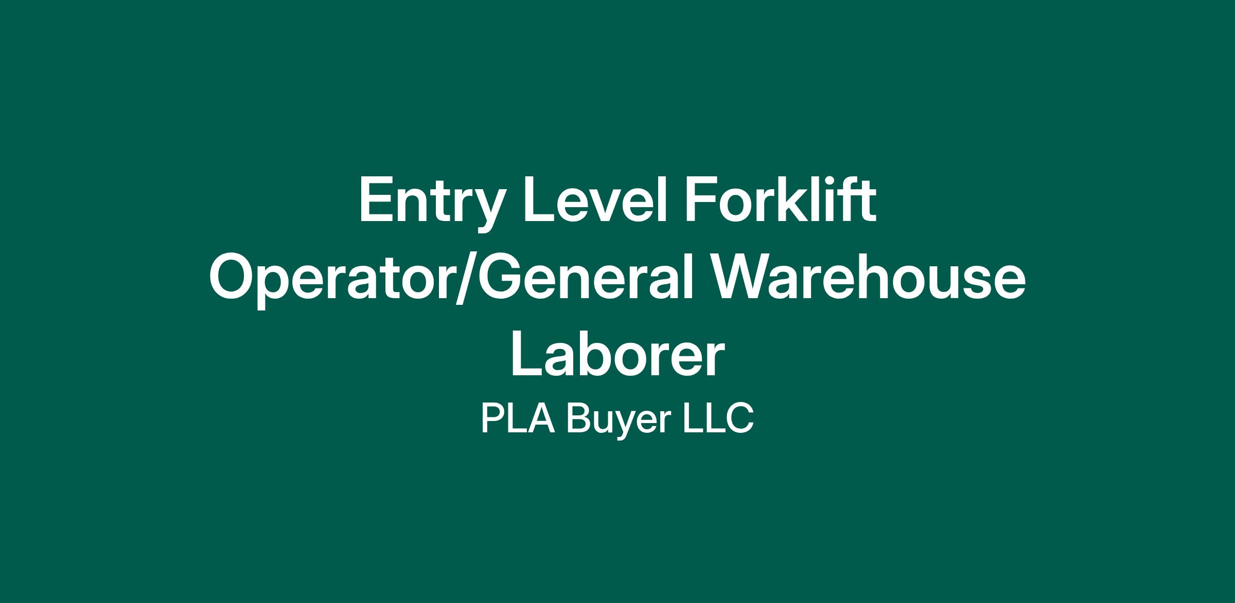 Entry Level Forklift Operator/General Warehouse Laborer