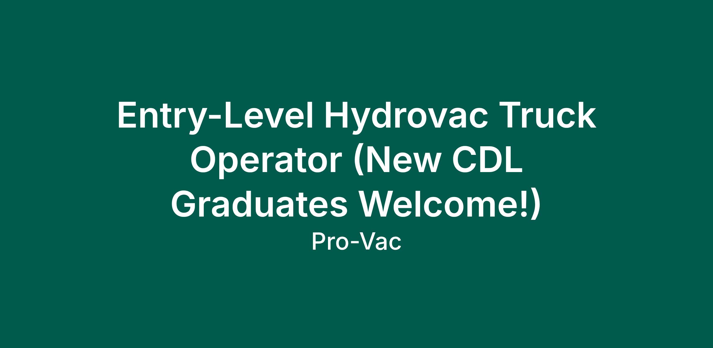 Are you a new CDL graduate looking for your first driving role? Pro-Vac is the perfect place to launch your career. We proudly hire entry-level Class A and Class B CDL drivers and provide hands-on, paid training to help you become a skilled Hydrovac Truck Operator.