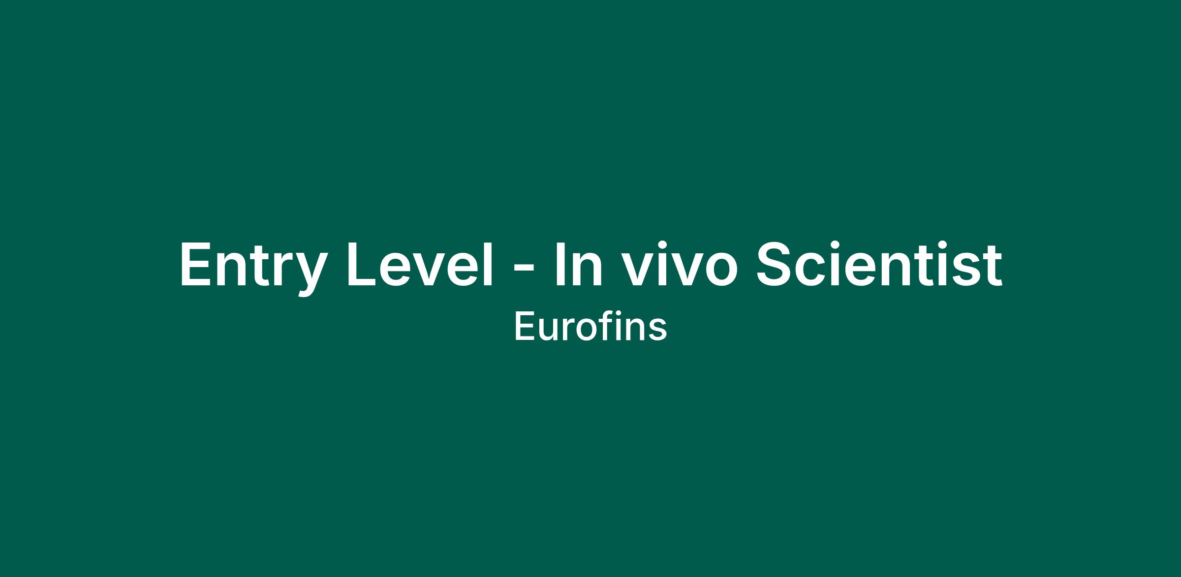 Entry Level - In vivo Scientist
