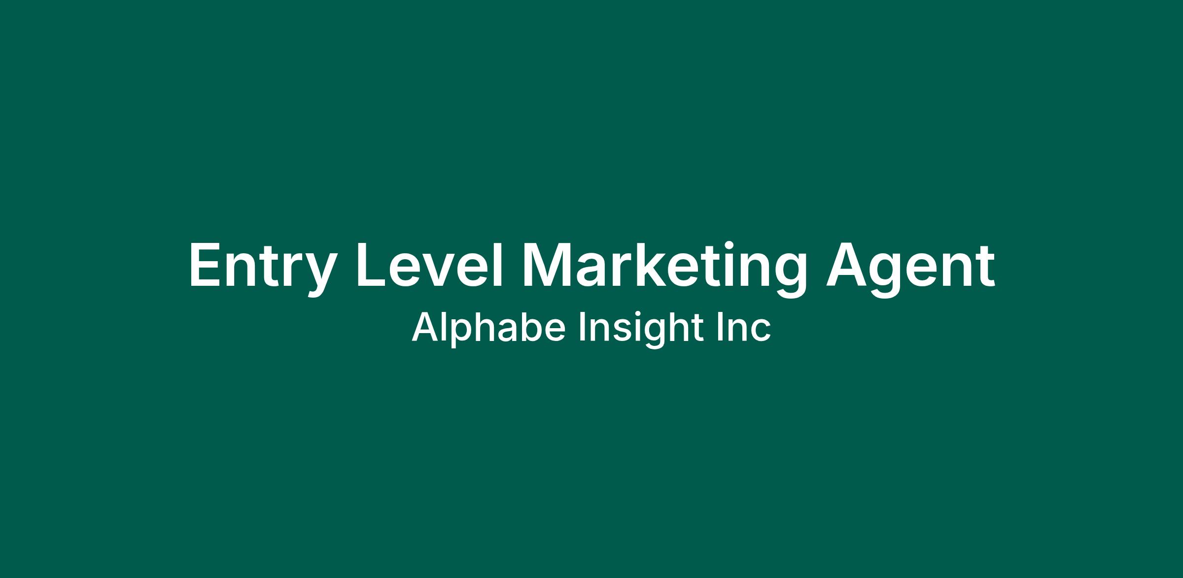 We are seeking a motivated and enthusiastic Entry Level Marketing Agent to join our dynamic marketing team. This role is ideal for recent graduates or individuals looking to start their career in marketing by gaining hands-on experience in a fast-paced and supportive environment. As an Entry Level Marketing Agent, you will play a vital role in assisting with the development and execution of marketing campaigns, conducting market research, and analyzing customer data to help drive strategic decisions