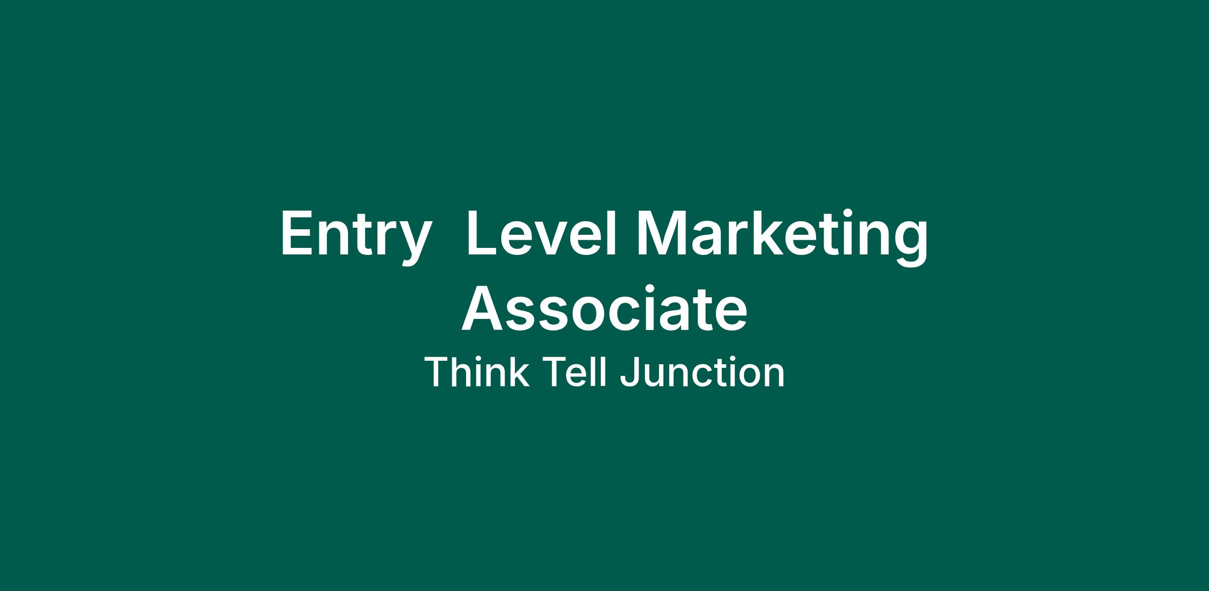 ThinkTell Junction We are seeking a motivated and enthusiastic Entry Level Marketing Associate to join our dynamic marketing team. This role offers an excellent opportunity for recent graduates or individuals new to the marketing field to develop their skills and gain hands-on experience in a fast-paced and creative environment.