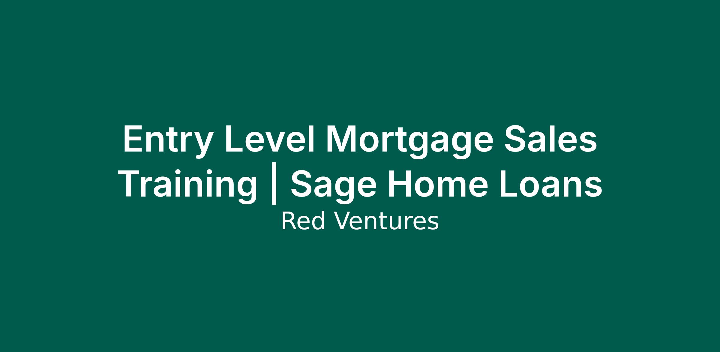 Entry Level Mortgage Sales Training | Sage Home Loans
