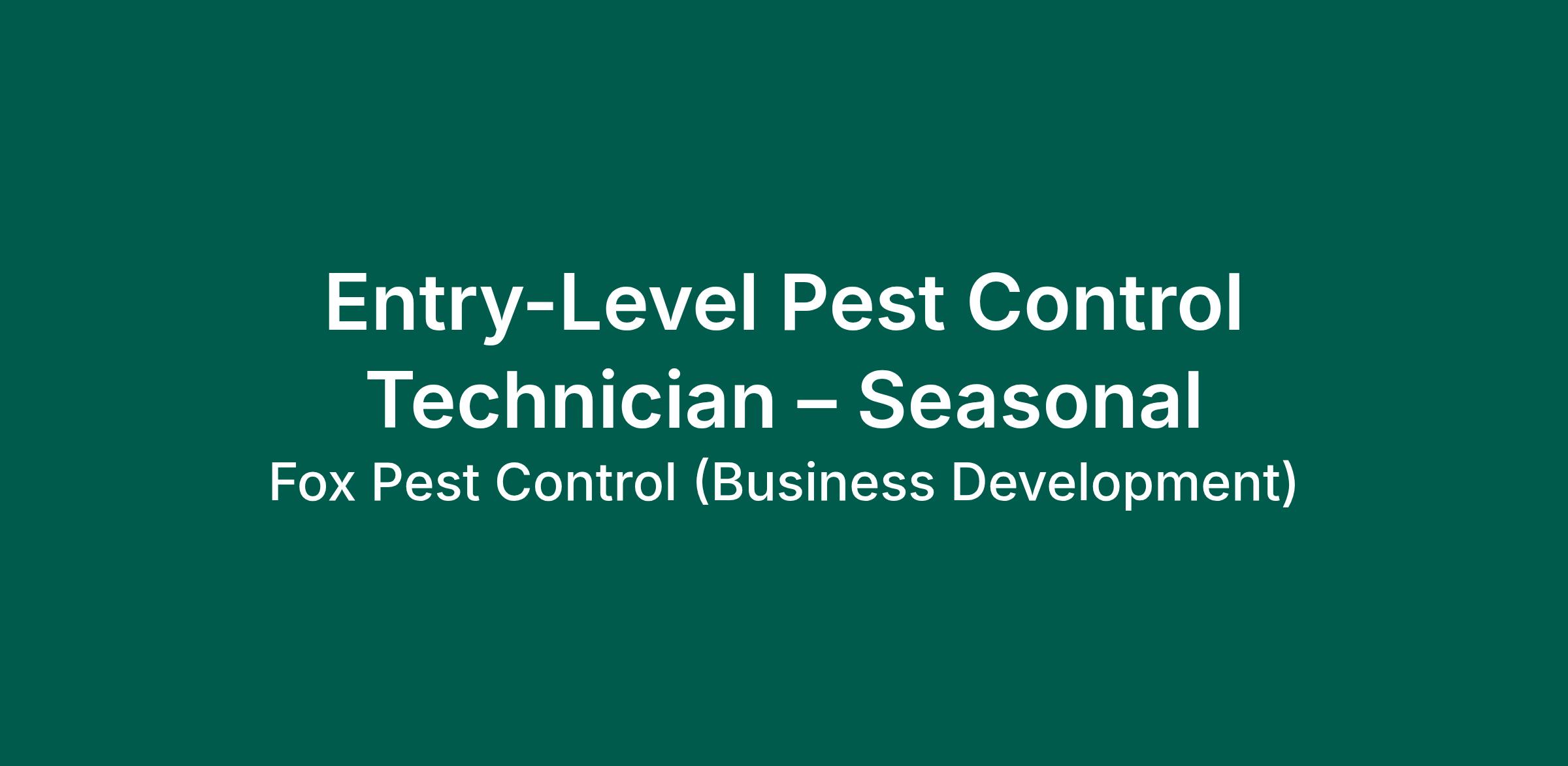 When you join Fox, you’re not just starting a job - you’re joining a community committed to helping you become the best version of yourself. Ready to start your career in Pest Control? Apply today!