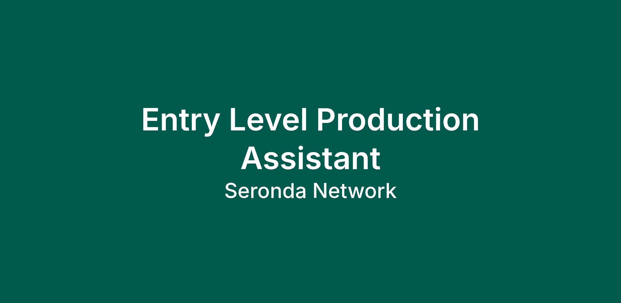 Join Seronda Networks as an Entry Level Production Assistant