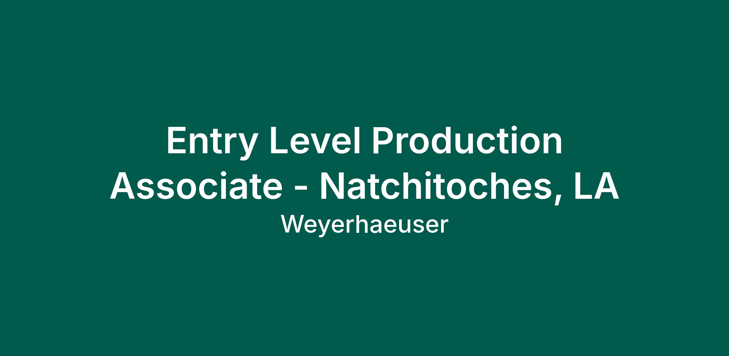 Entry Level Production Associate - Natchitoches, LA