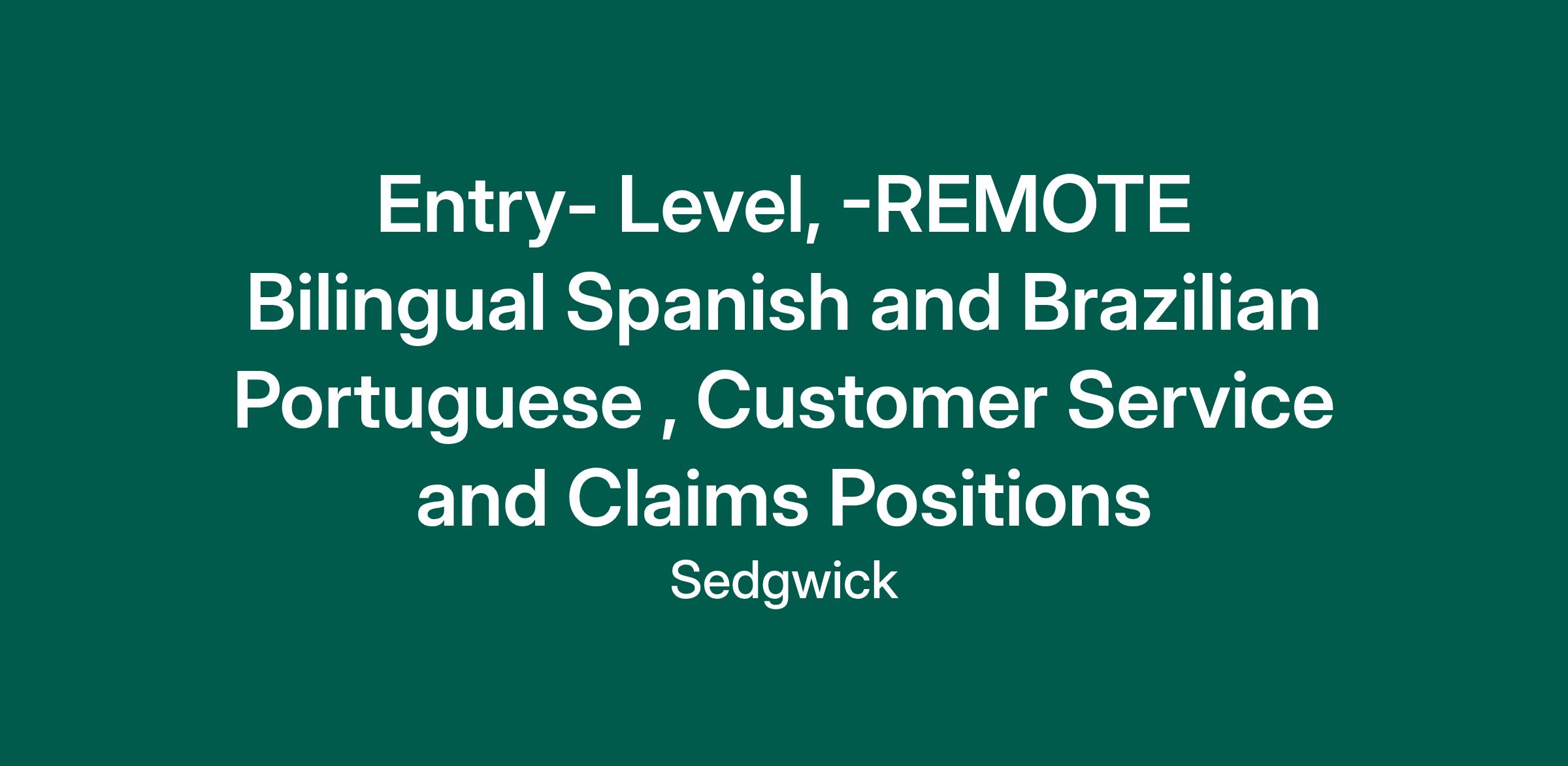 Entry- Level, -REMOTE Bilingual Spanish and Brazilian Portuguese , Customer Service and Claims Positions