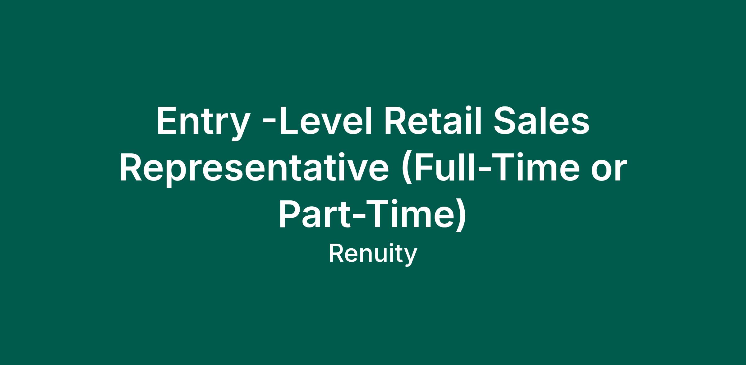 Entry -Level Retail Sales Representative (Full-Time or Part-Time)