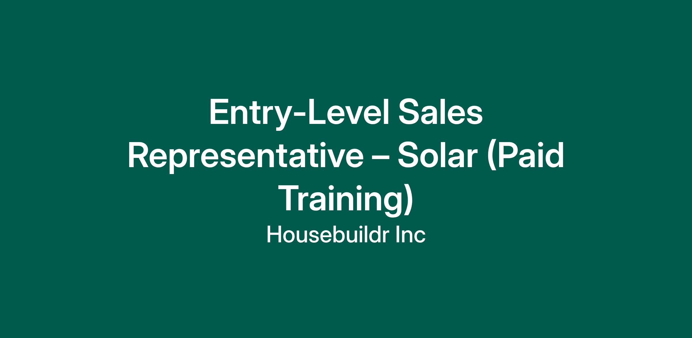 Entry-Level Sales Representative – Solar (Paid Training)
