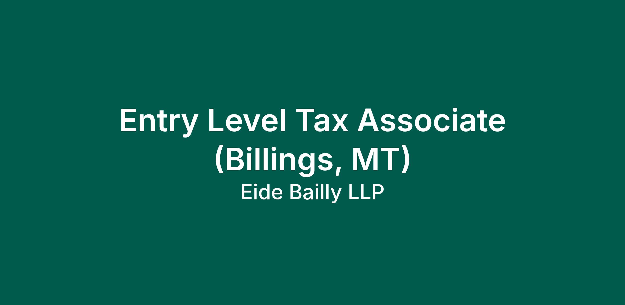 We are looking for full-time (40+ hours/week), in person Entry Level Tax Associates in our Billings, MT office for the following start timeframes: