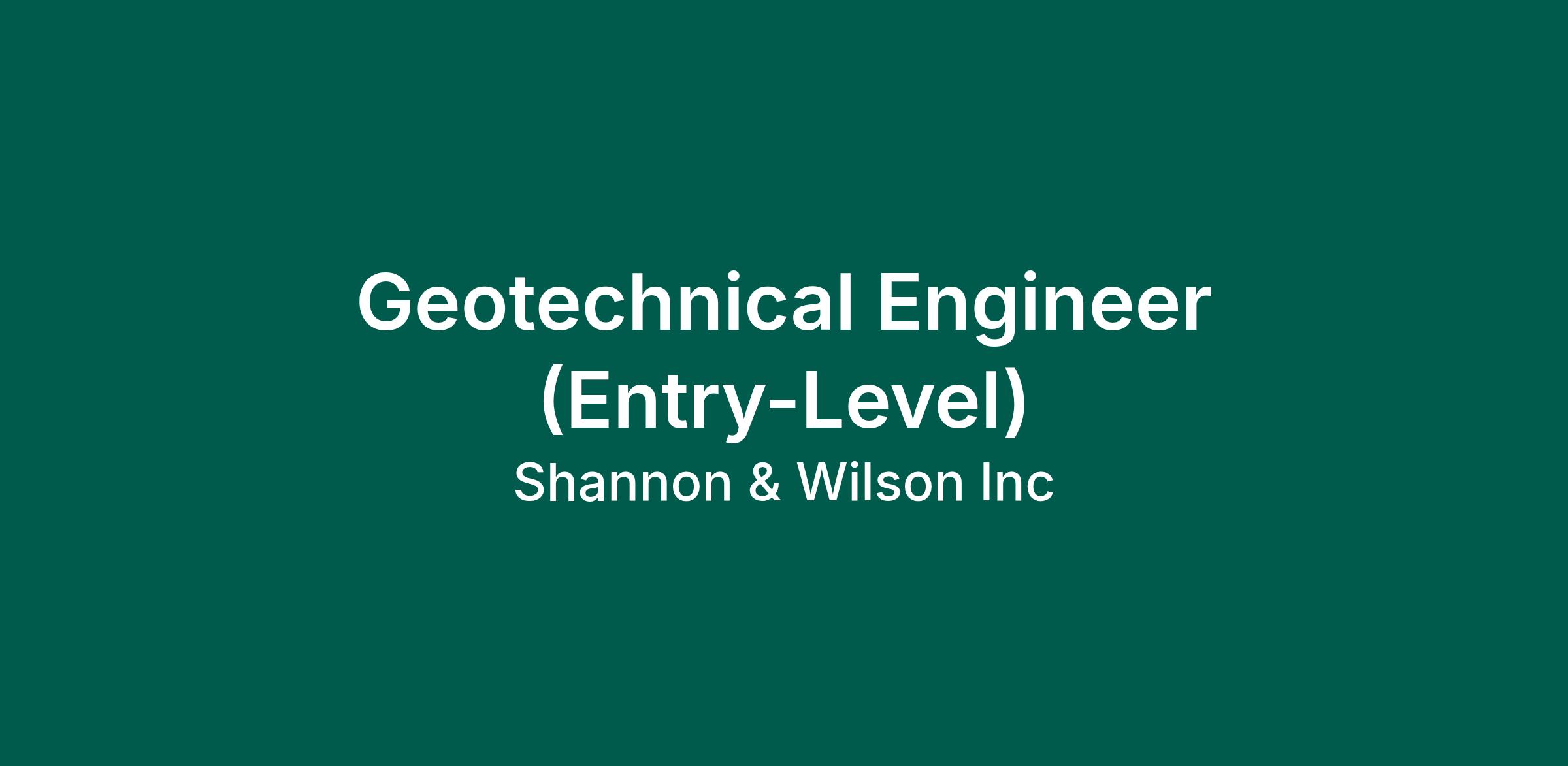 Typically, depending on an applicantβs education, experience, other qualifications they possess, if they are a fit for the company and local office culture, and the current business needs, an Entry-Level Geotechnical Engineer typically would be placed at a Shannon & Wilson Professional I, II, III, or IV level.