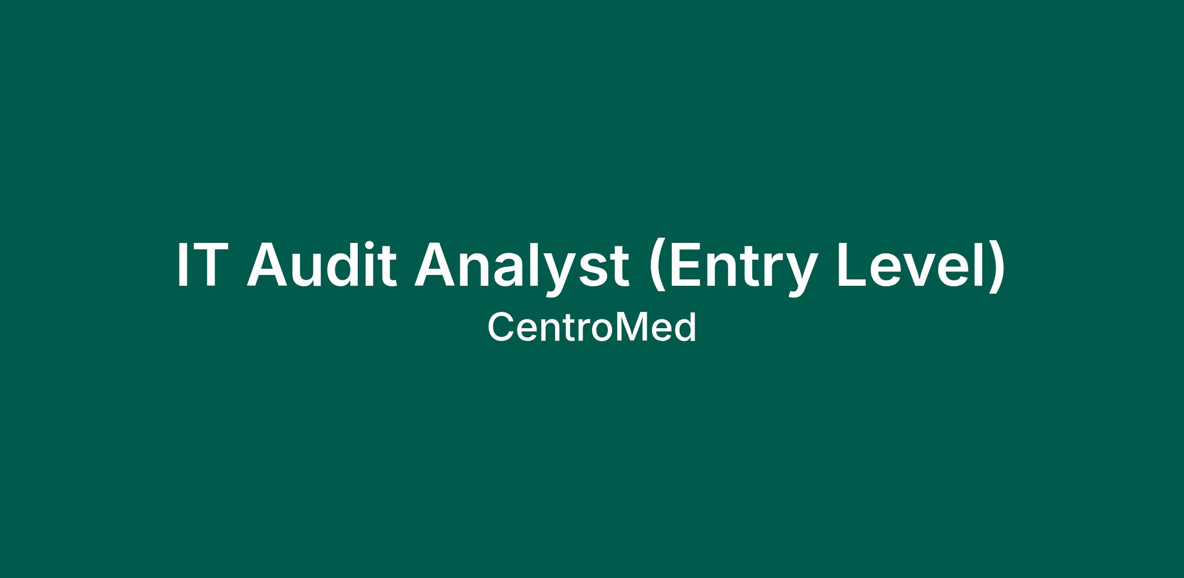 We are searching for our next SUPER STAR ! As the IT Audit Analyst, under the supervision of VP/CIO and AVP/ACIO, you will be responsible for completing inventory audits and reporting to IT management and department heads. IT Audit Analyst is responsible for developing and implementing IT systems life cycle process and maintaining an organization-wide inventory database to ensure all lateral asset movements are tracked throughout their life cycle. IT Audit Analyst will work with finance, IT procurement, and all applicable departments to make sure system compliance is maintained. IT Audit Analyst will work with the IT department to implement proper governance of asset management across CentroMedβs infrastructure.