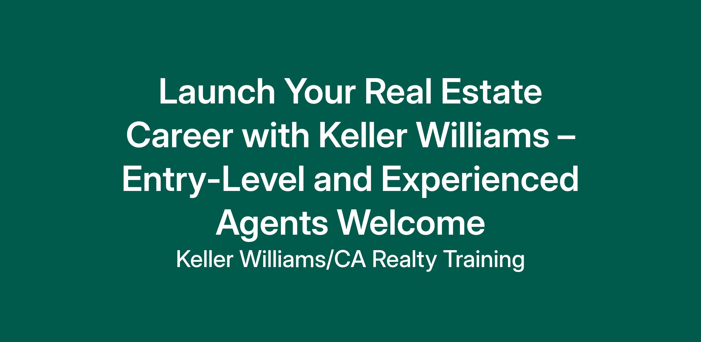 Launch Your Real Estate Career with Keller Williams – Entry-Level and Experienced Agents Welcome