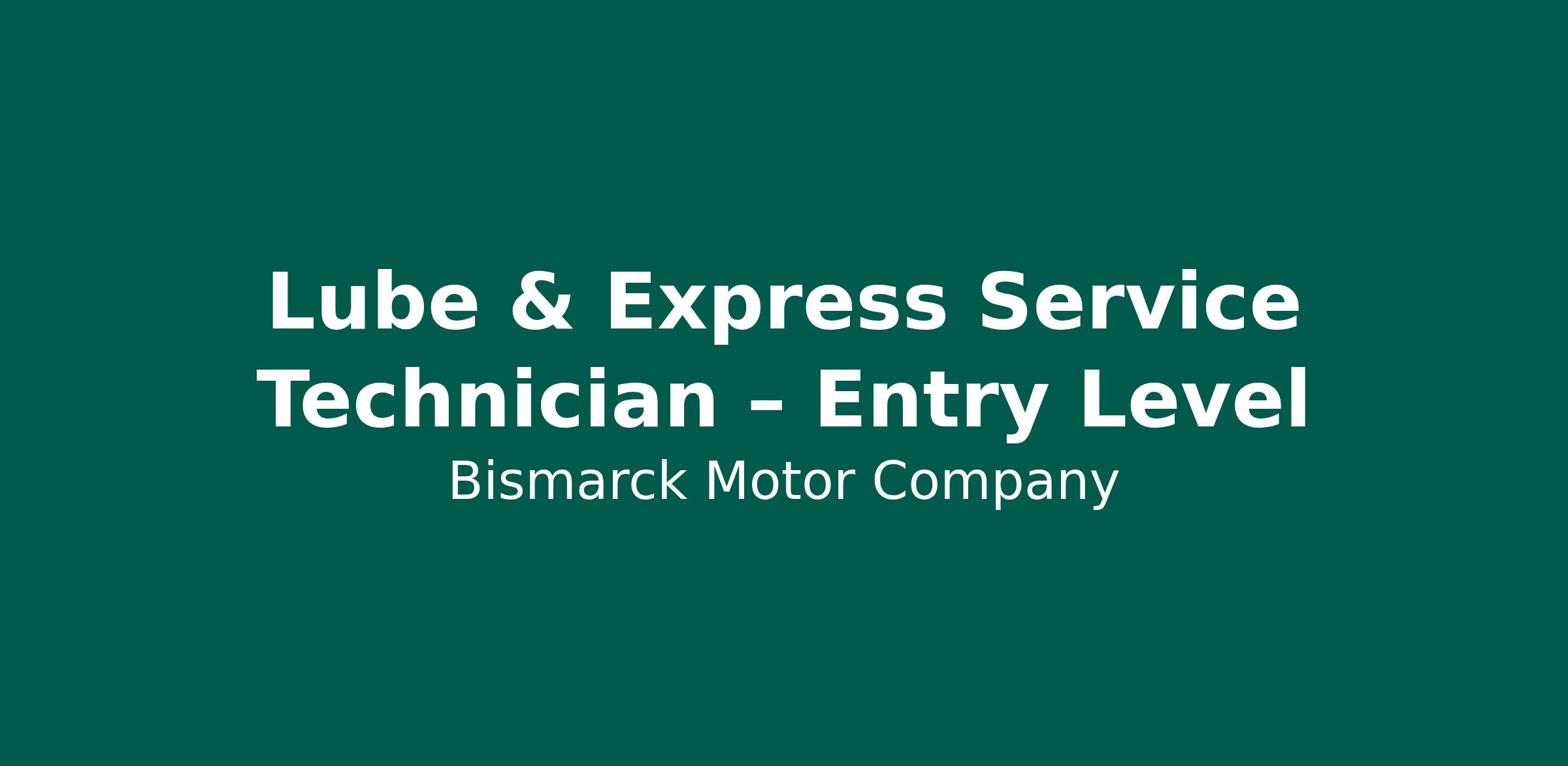 Bismarck Motor Company is hiring a full-time Lube & Express Service Technician. This is an entry-level position — no prior automotive experience required. You'll receive hands-on training from experienced technicians and build the skills for a long-term career in automotive service. Positions are available at both our Bismarck and Mandan, ND locations with clear paths for advancement.