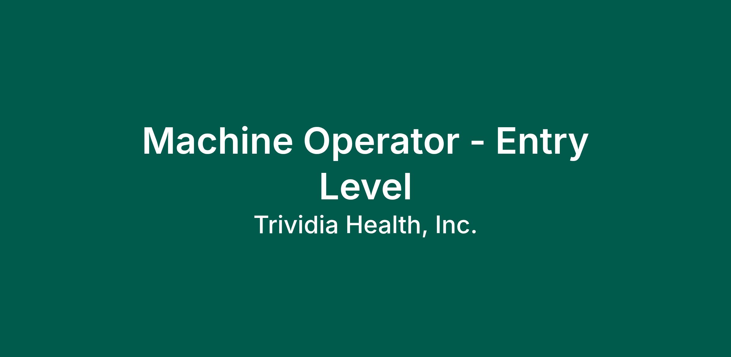 Machine Operator - Entry Level