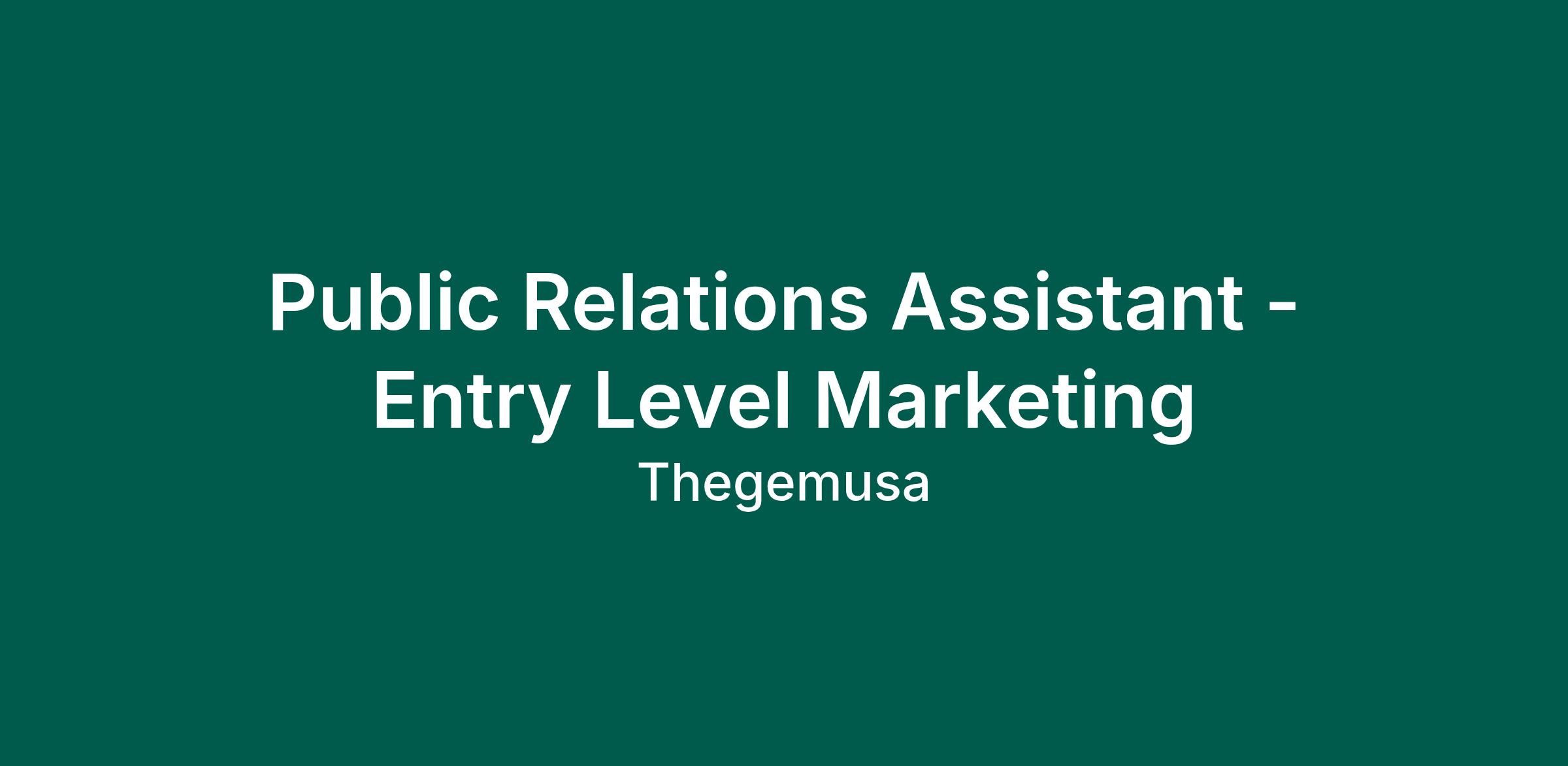 Public Relations Assistant - Entry Level Marketing