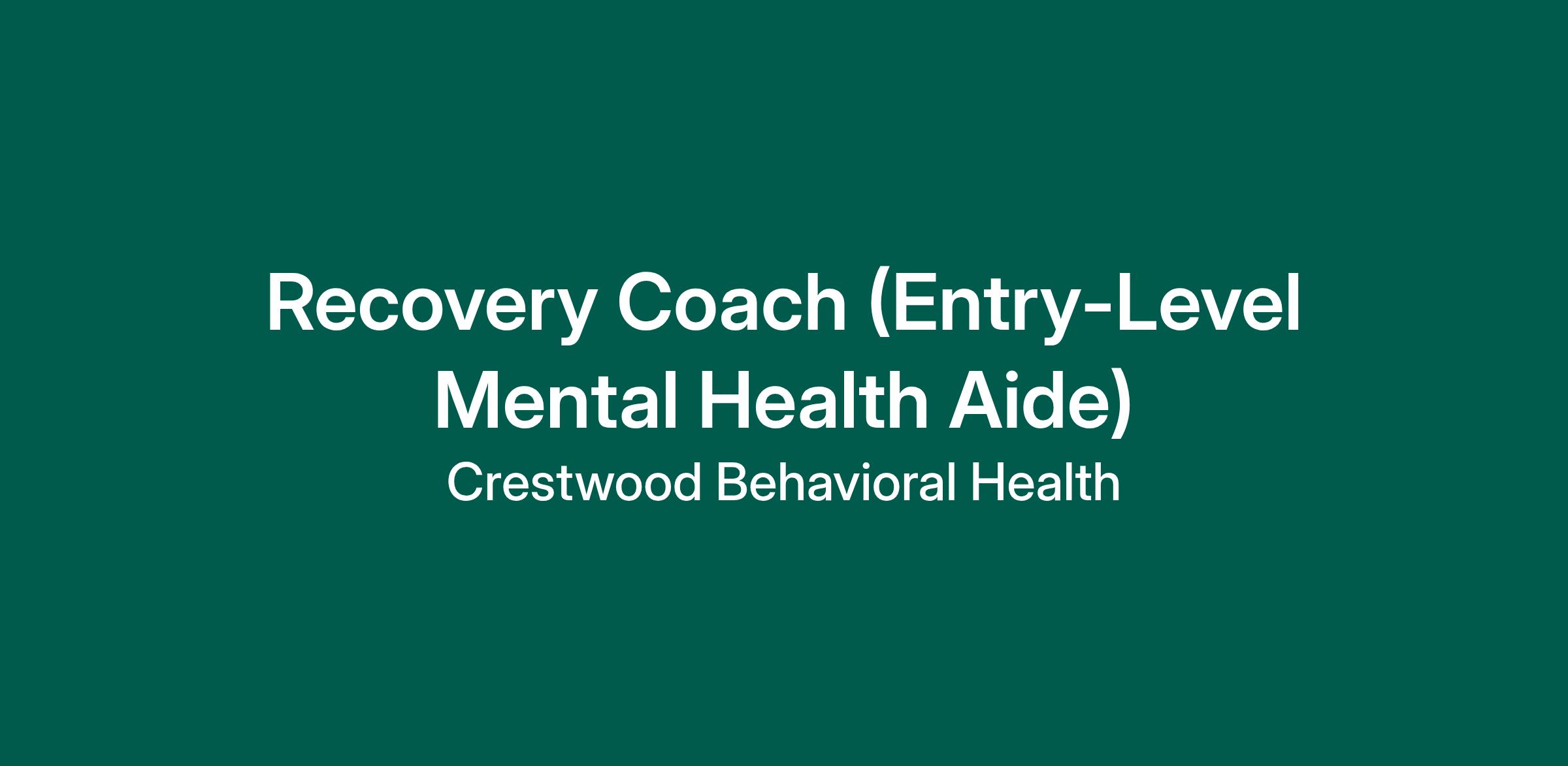 Title: Recovery Coach (Entry-Level Mental Health Aide)