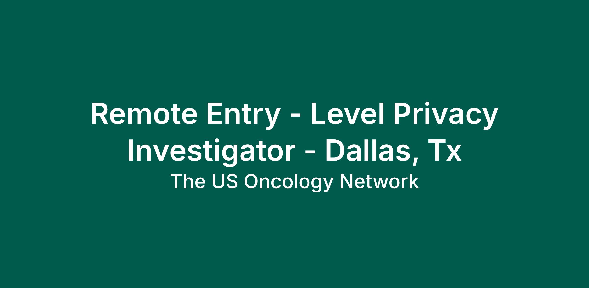 Texas Oncology is looking for a Remote Entry-Level Privacy Investigator to join our team! This is an on-site position in Dallas, Texas. Some travel may be necessary, up to 20%.