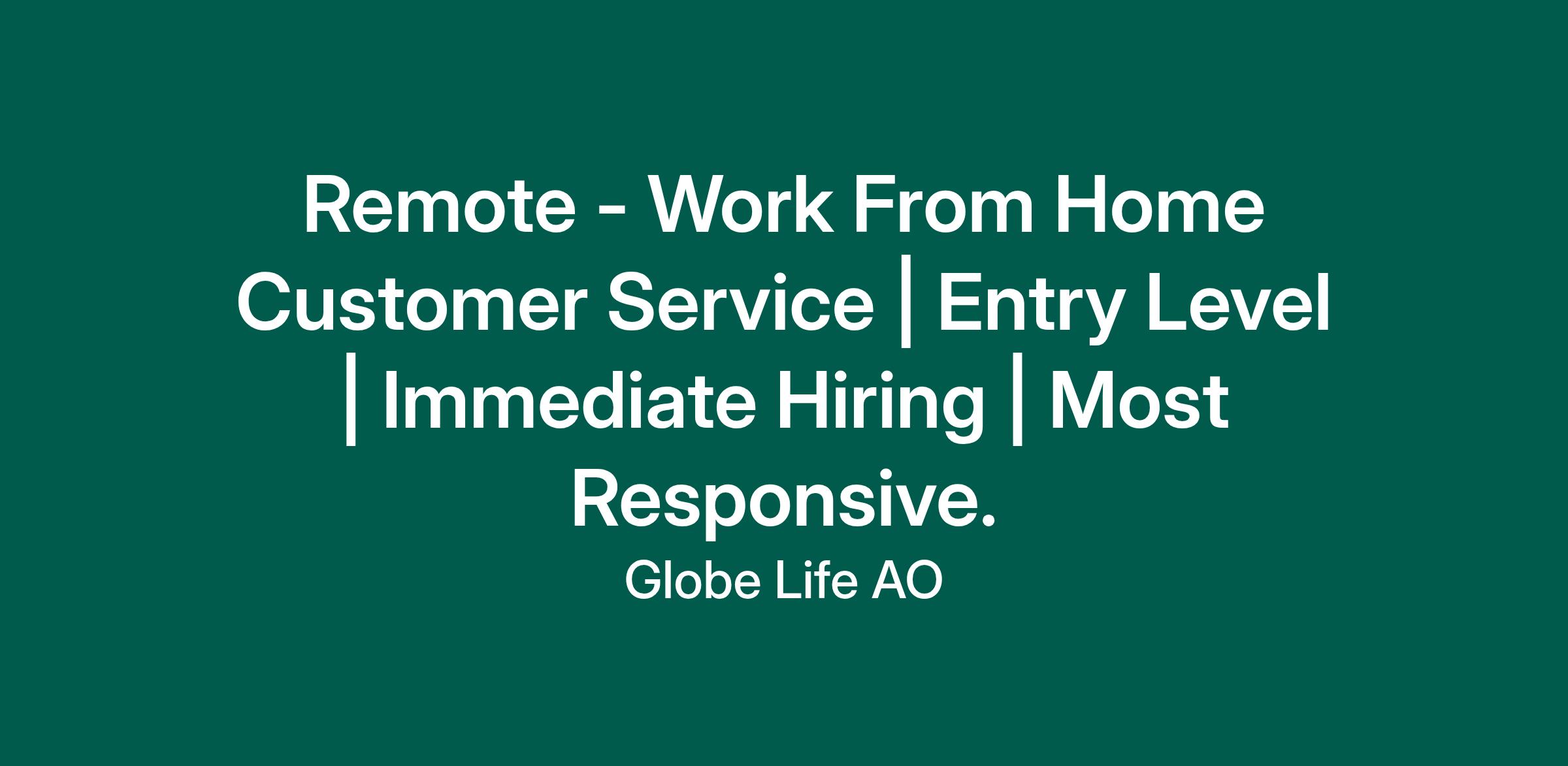 Remote - Work From Home Customer Service | Entry Level | Immediate Hiring | Most Responsive.