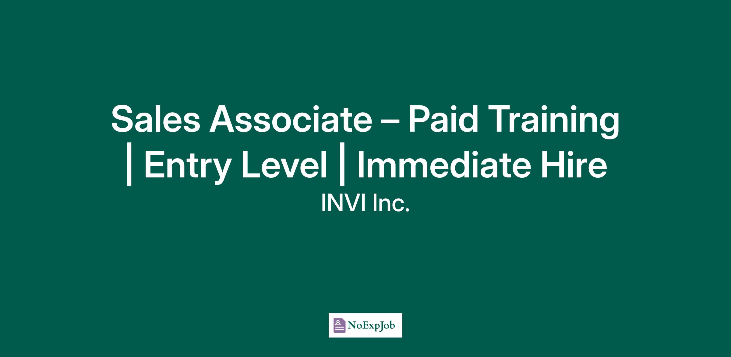 Sales Associate – Paid Training | Entry Level | Immediate Hire