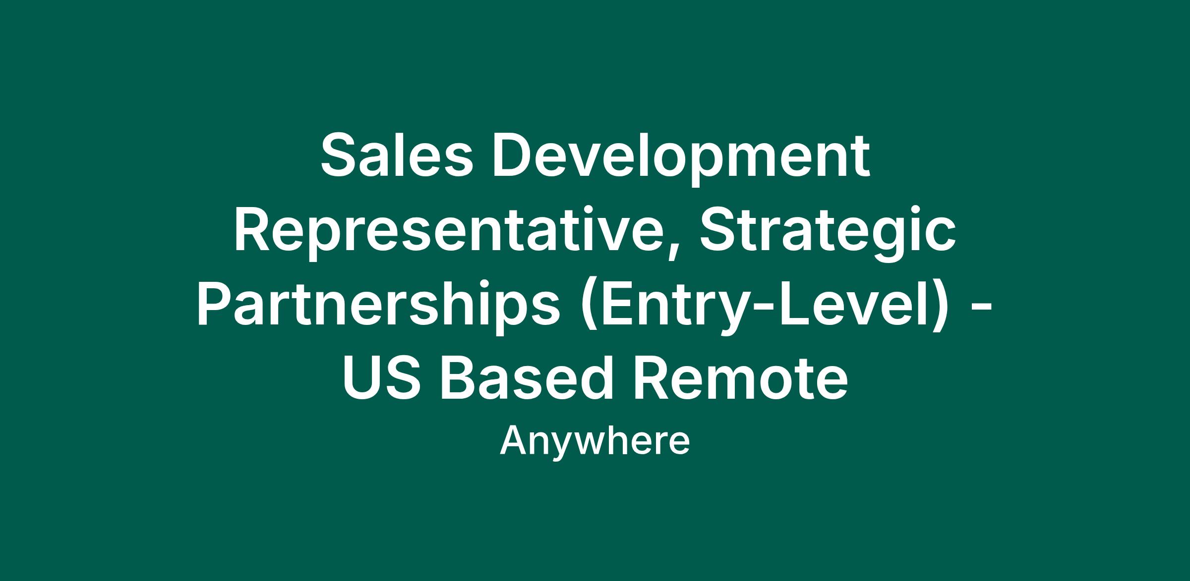 Sales Development Representative, Strategic Partnerships (Entry-Level) - US Based Remote