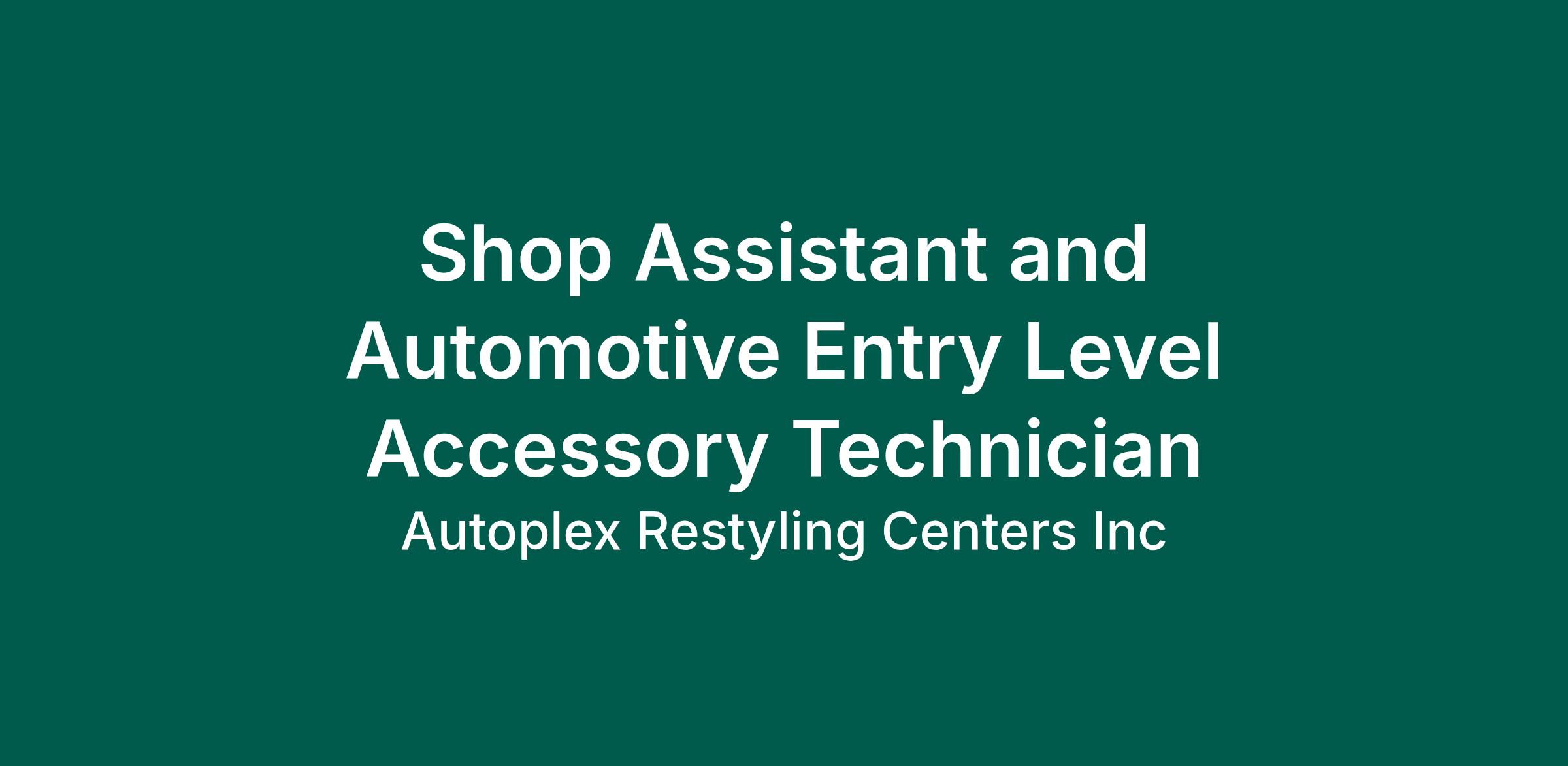 Autoplex is seeking a motivated Automotive Shop Assistant to support our technicians and daily shop operations. This role is ideal for someone interested in learning the automotive restyling industry, including leather interiors, accessories, and general vehicle upgrades.