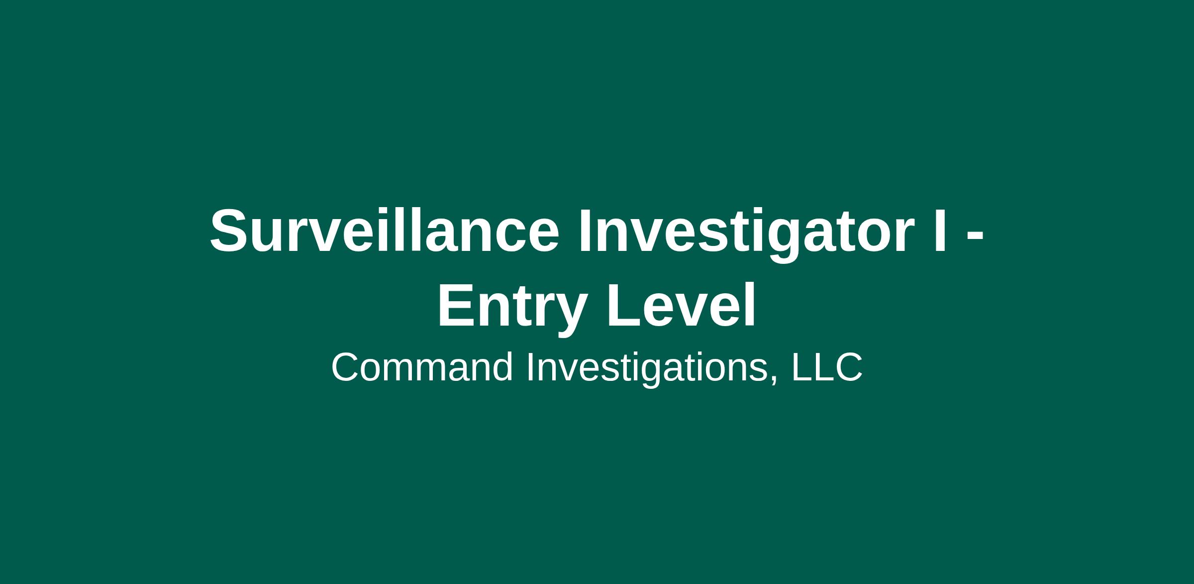 Command Investigations, LLC is looking for Surveillance Investigators to become part of a dynamic team. This is a great opportunity for individuals with prior investigative experience who demonstrate integrity, independence, and a drive to succeed in a fast-paced investigative environment.