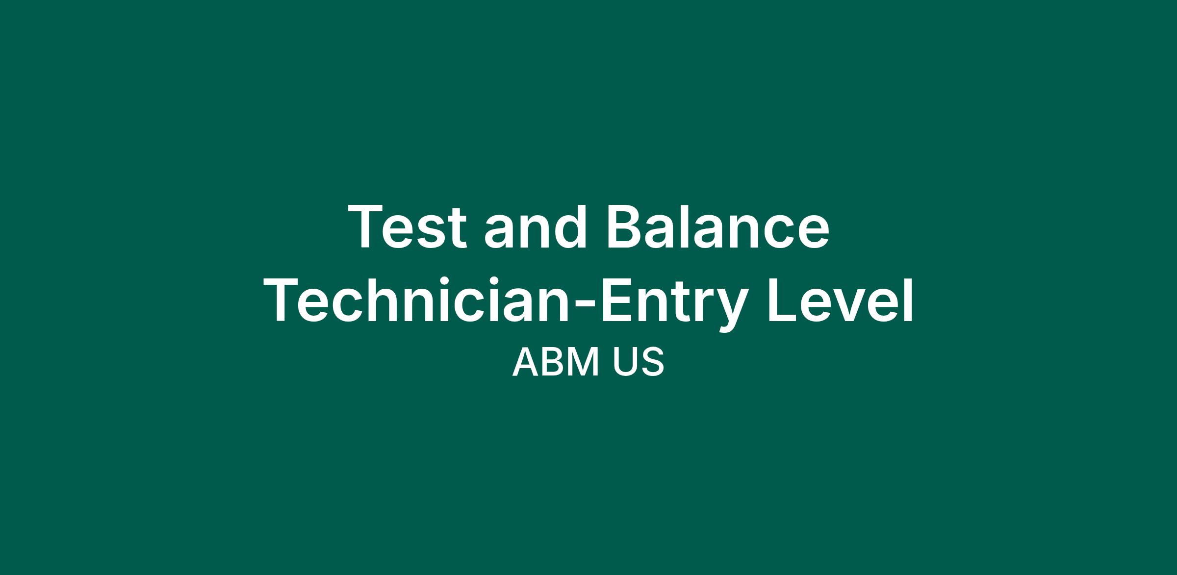 Test and Balance Technician-Entry Level